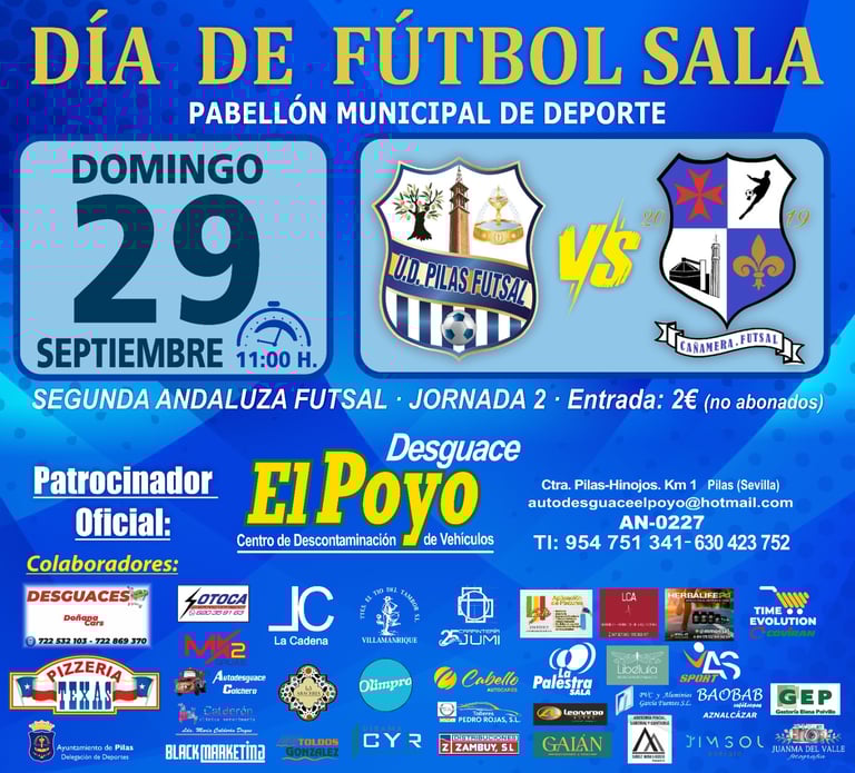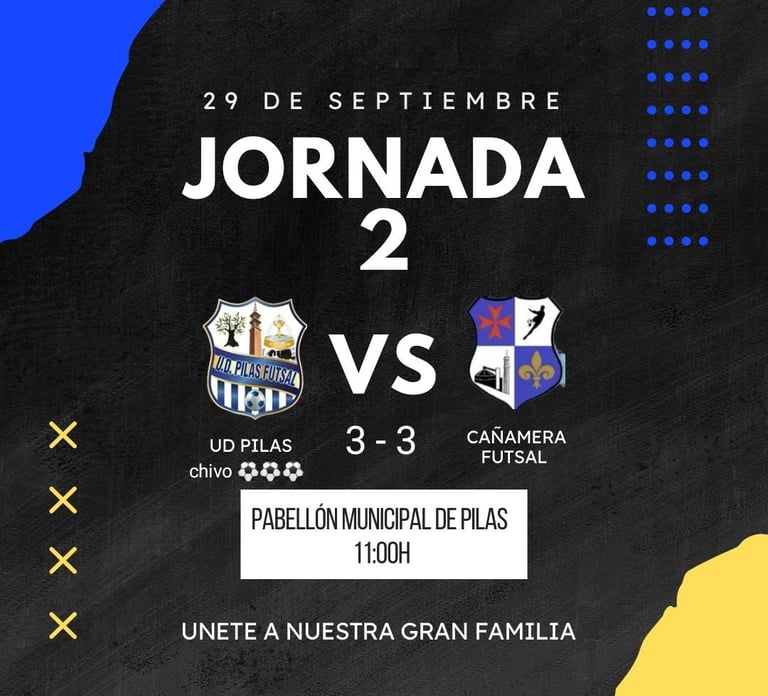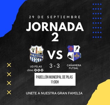El UD Pilas Futsal recibe en casa al Cañamera Futsal tras una primera jornada frente a un rival de gran nivel. Con el equipo ya asentado en la categoría, estamos listos para luchar por la victoria en este emocionante enfrentamiento.